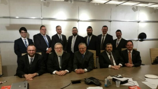 Seated: Rabbi Yitzchok Ehrman, Chief Operating Officer, Agudath Israel of Illinois; Rabbi Labish Becker, Executive Director, Agudath Israel of America; Rabbi Yosef Chaim Golding, Chief Operating Officer; Rabbi Abba Cohen, Vice President for Federal Affairs and Washington Director; Rabbi AD Motzen, National Director of State Relations.