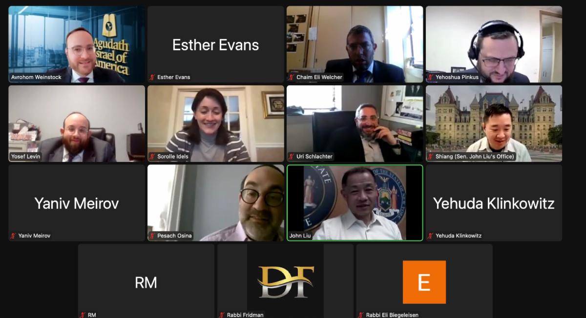 This week, Agudah held its second Albany Day of the 2022 legislative season. This meeting was for the areas of Queens and Long Island. The delegation met over zoom with nearly a dozen legislators or staff members. Topics covered included security for yeshivas, expanded child care credits, additional funding for summer feeding programs, and more. See below for photos.